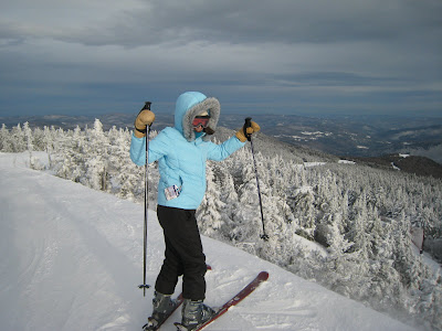 One thing I really liked about Killington though was the fact that the wind had turned all the trees into "powdered sugar" as my family calls it- you know, when the pine trees are so coated in snow that it looks like they're made of candy. Absolutely gorgeous! So here's me acting a bit macho on the edge of a precipice with a grove of powdered sugar pine trees in the background.